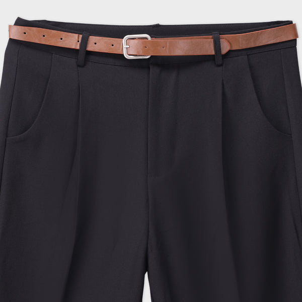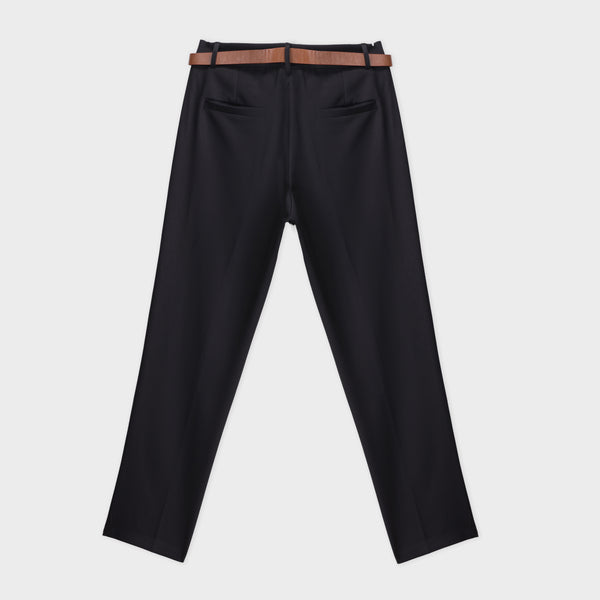 Sophisticated tapered fit tailored pants featuring scoop pockets and a sharp press crease for a refined silhouette. Crafted from smooth woven fabric, offering structure, comfort, and a modern, polished look suitable for any occasion.