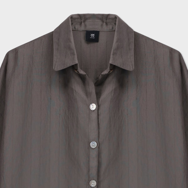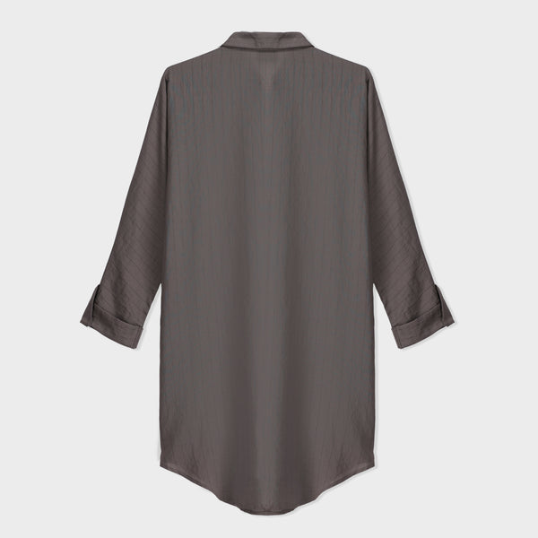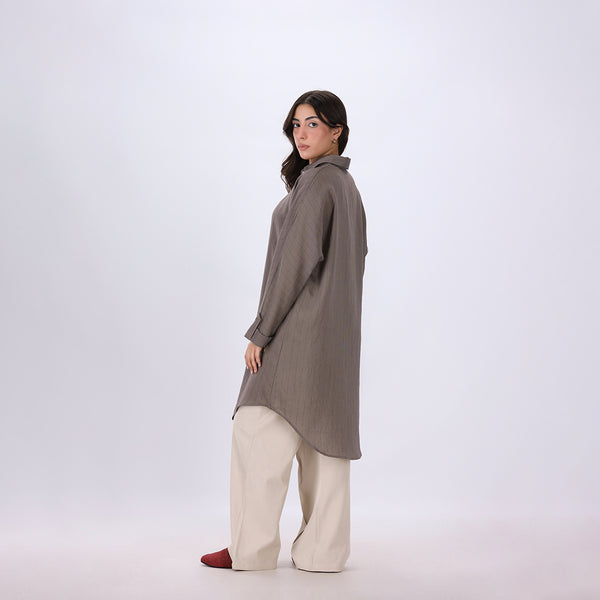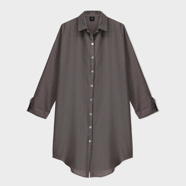 A stylish striped long sleeve tunic featuring a front open placket and classic collar. Designed in an oversized fit for a relaxed, contemporary look. Crafted from soft woven fabric for breathable comfort and effortless drape.