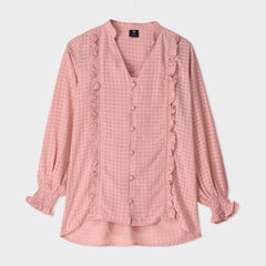 FRONT OPEN BLOUSE WITH RUFFLE DETAILS