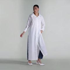 A stylish long dress shirt crafted from breathable linen, perfect for elevating your everyday wardrobe. Designed for effortless, inspirational dressing in your daily routine.